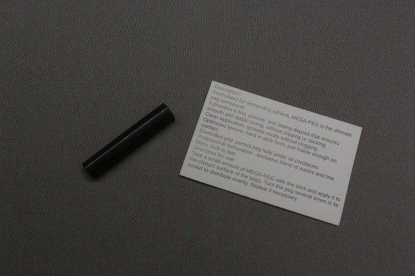 Développée par des Luthiers, MEGA PEG est actuellement le meilleur produit de graissage et d'ajustage de chevilles.